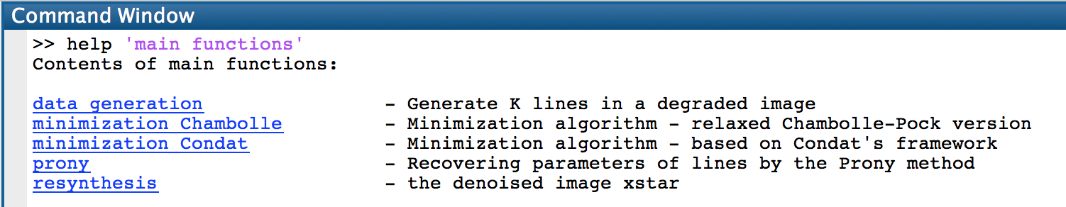 help 'main functions'On visualise la description de toutes les fonctions du répertoire :